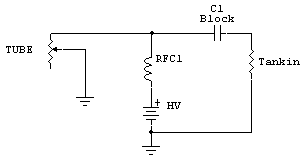 The tank circuit transforms the load impedance of the antenna system or dummy load up to a new value. This resistance appears at C1, and is coupled through C1 to the tube and power supply junction. This is the resistance value we are actually calculating when we plan the plate resistance, Rp.